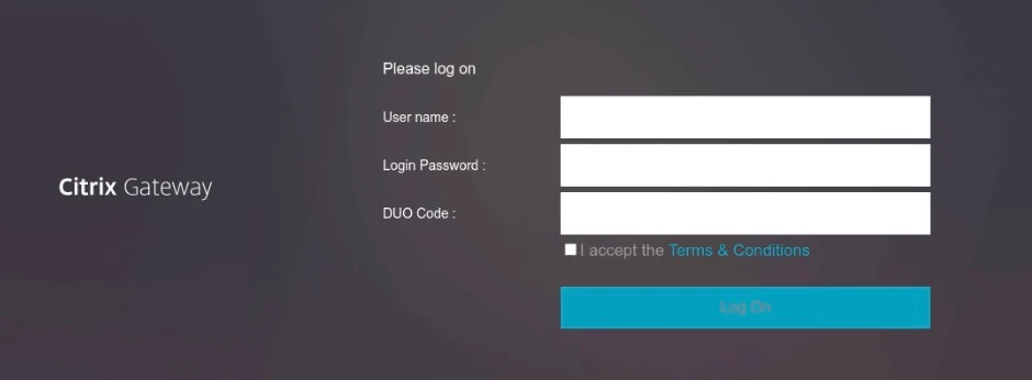 The image depicts a phishing login page captured Feb. 7, 2025, resembling the Citrix Gateway login interface that requests an MFA code.